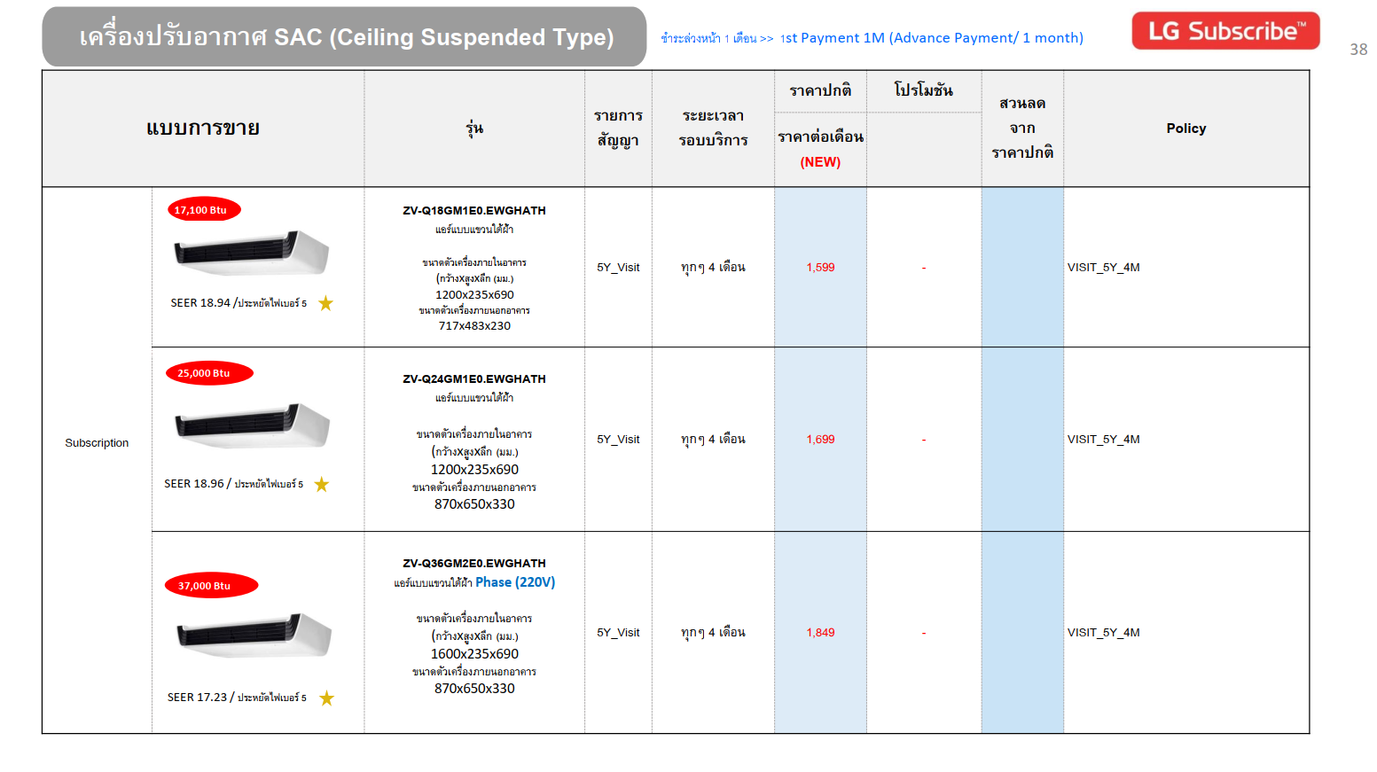 เครื่องปรับอากาศ SAC (Ceiling Suspended Type) 17100 - 37000 BTU แอร์แบบแขวนใต้ฝ้า